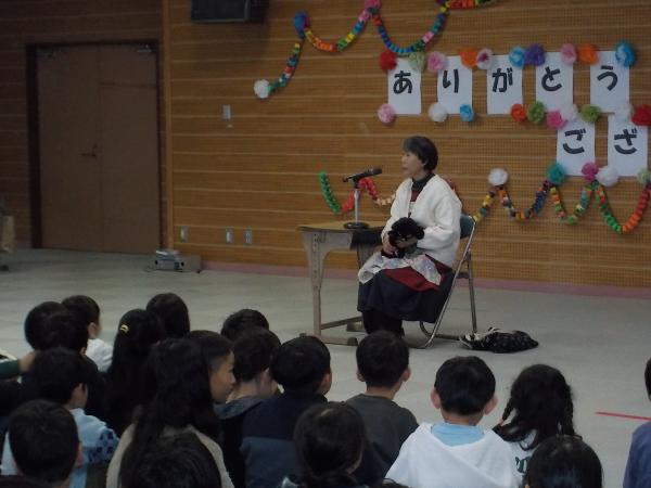 茎崎お話の会の方が「猫浄瑠璃」の読み聞かせをしてくださいました。