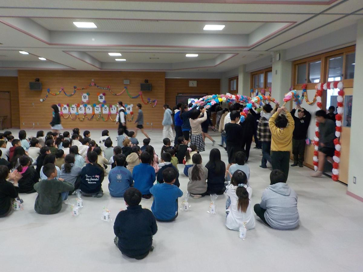 今日は多目的室で『6年生を送る会』が行われました。1年生から5年生まで、それぞれの学年が様々な形で6年生に感謝の気持ちやおめでとうの気持ちを伝えました。また、会の進行は5年生が行いましたが、全員で協力して進める姿が、とても頼もしく思えました。6年生は卒業するまであと少しとなりました。最後まで、たくさんの思い出をつくってほしいと思います。