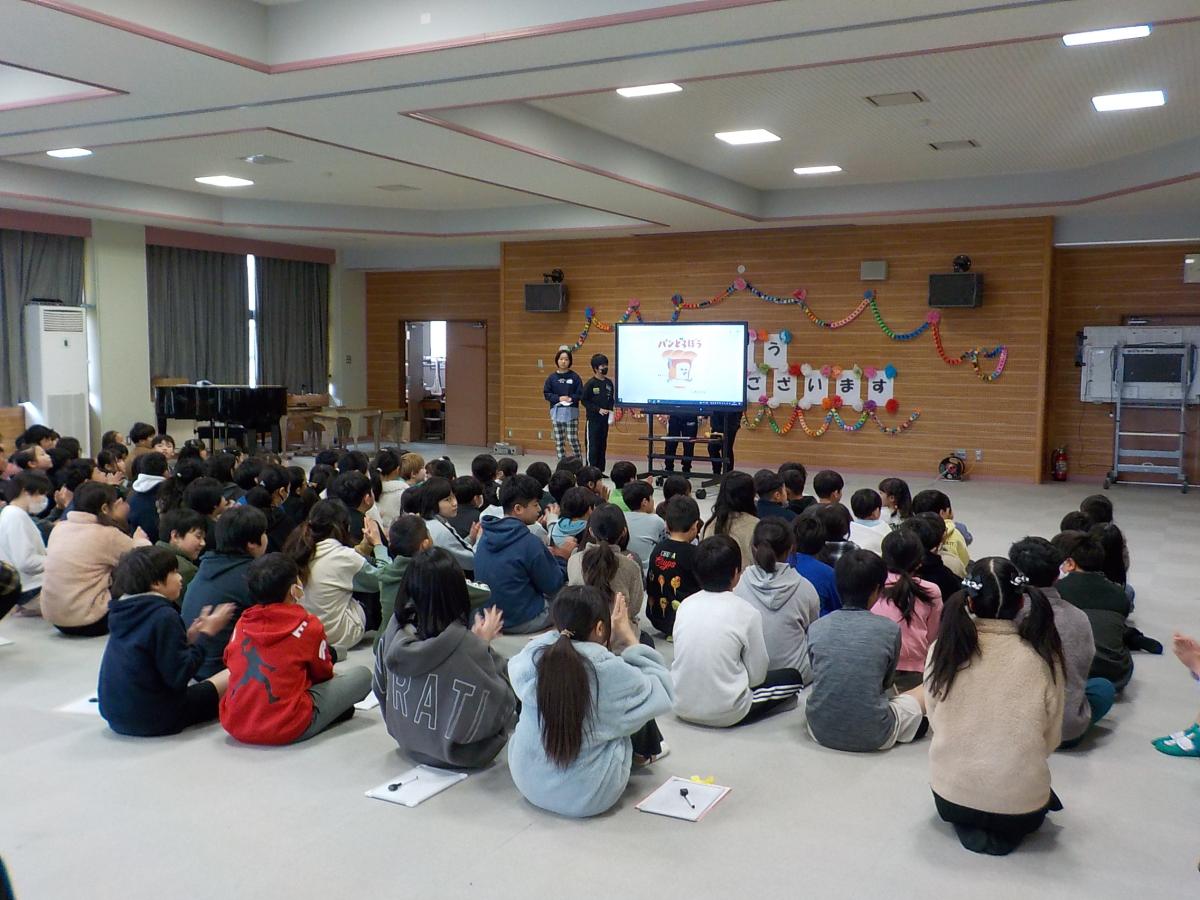 図書委員会の児童による「パンどろぼう」の読み聞かせやクイズ大会を行いました。