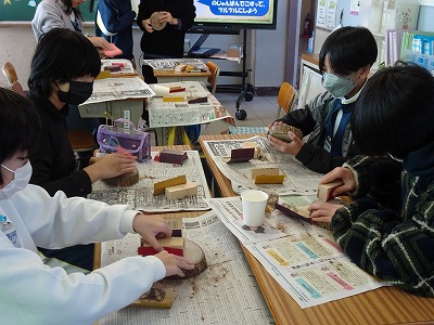 みそ汁に入れる具材は、栄養バランスを考えながら、それぞれのグループで話し合って決めました。