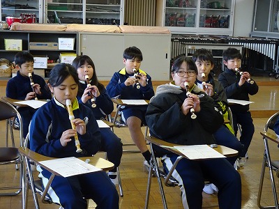 本日、3学年の学園交流会を実施しました。学園の他の小学校のみなさんによるリコーダー演奏や合奏を互いに聴き合い、音楽を通して温かな交流が生まれました。また、中学校の吹奏楽部による迫力ある演奏に、子どもたちは目を輝かせながら耳を傾けていました。一音一音を大切に聴こうとする姿や、演奏が終わるたびに大きな拍手を送る姿から、音楽の楽しさや仲間を大切にする気持ちが育まれていることを感じる交流会となりました。