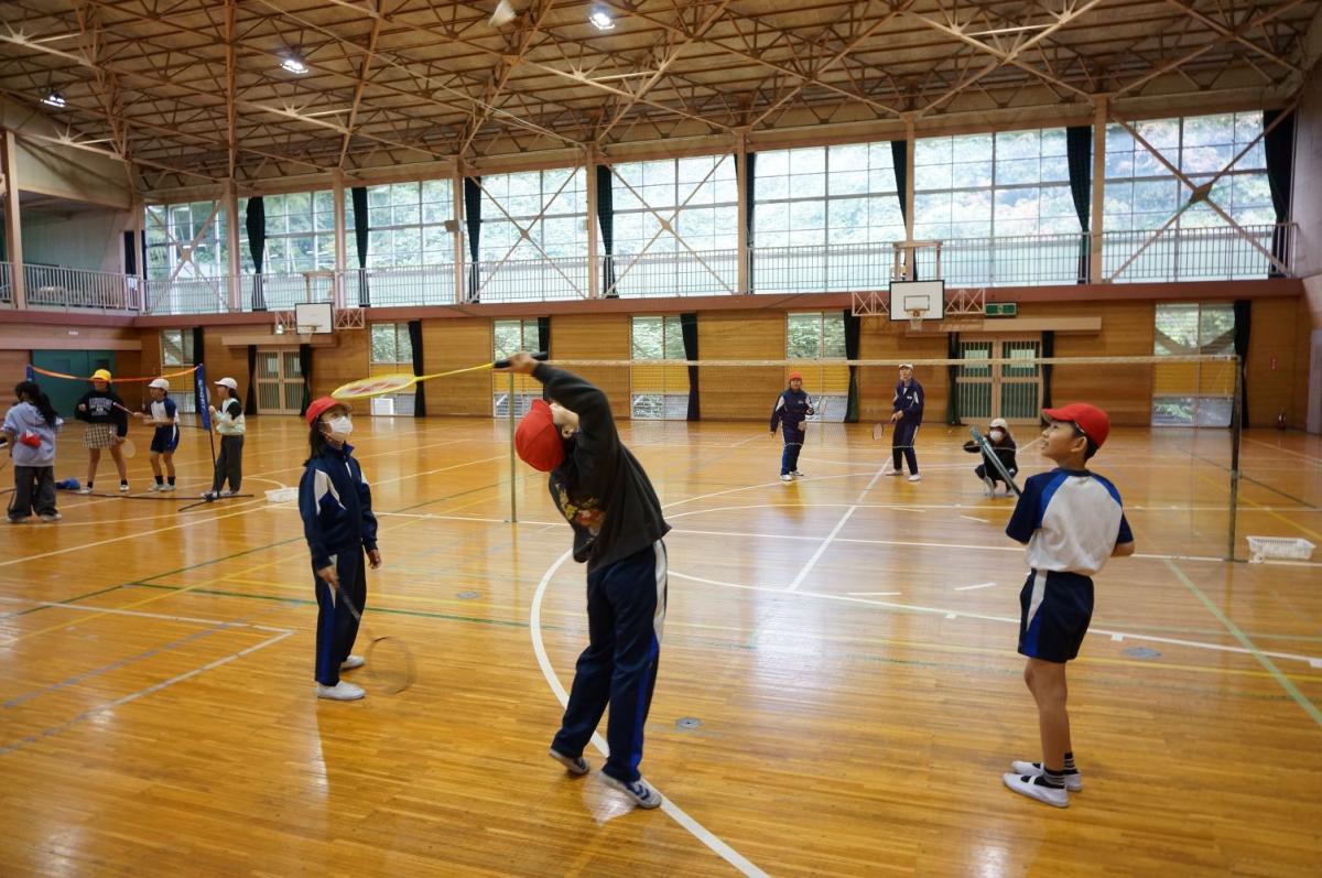 ラケットクラブです。体育館でバドミントンをしたり、卓球をしたりして楽しんでいます。だいぶ上達してきました。