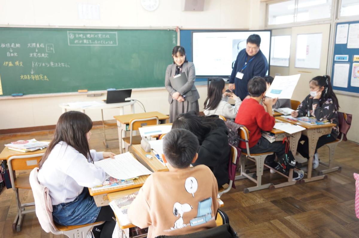 明治時代の憲法と今の憲法、明治時代の選挙と今の選挙を比べます。資料を見たり読んだりしながら、違いを探します。グループごとに比べる視点が少し違うようです。