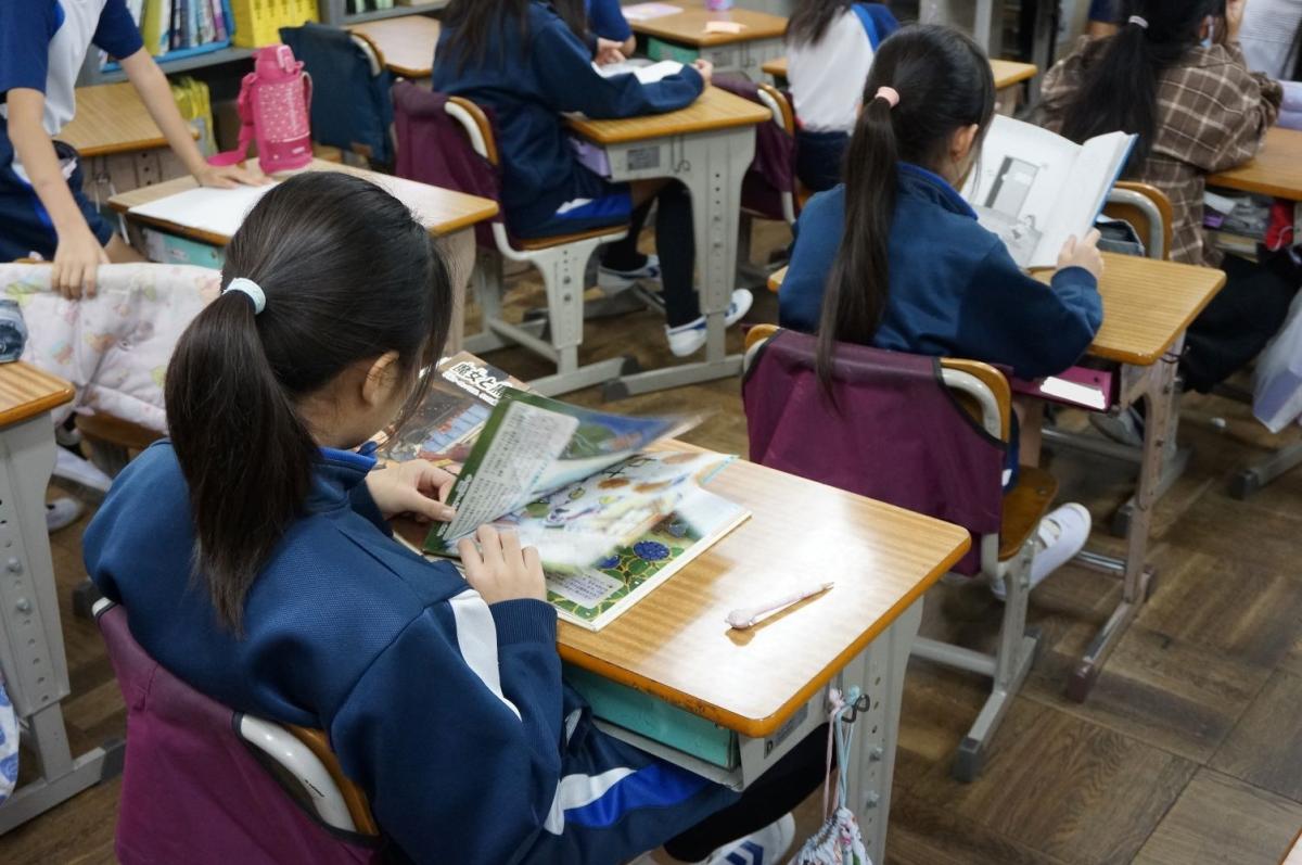 登校してから朝の会までの時間、ランドセルをしまって、学習の準備ができた児童から読書を始めます。1日のスタートは静かに落ち着いた環境づくりから始まります。