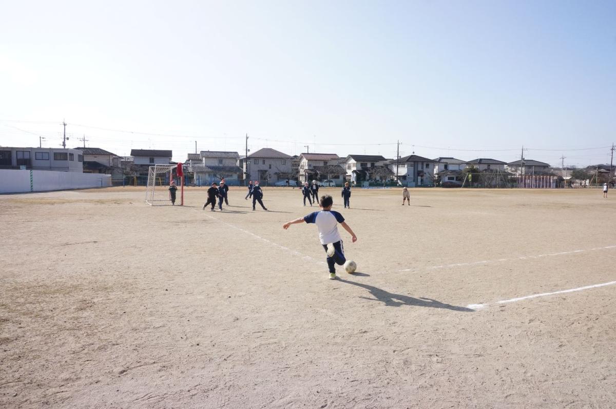 休み時間、4年生がサッカーをしていました。天気も良く、みんなでボールを追いかけます。時間いっぱいまで、夢中で遊んでいました。