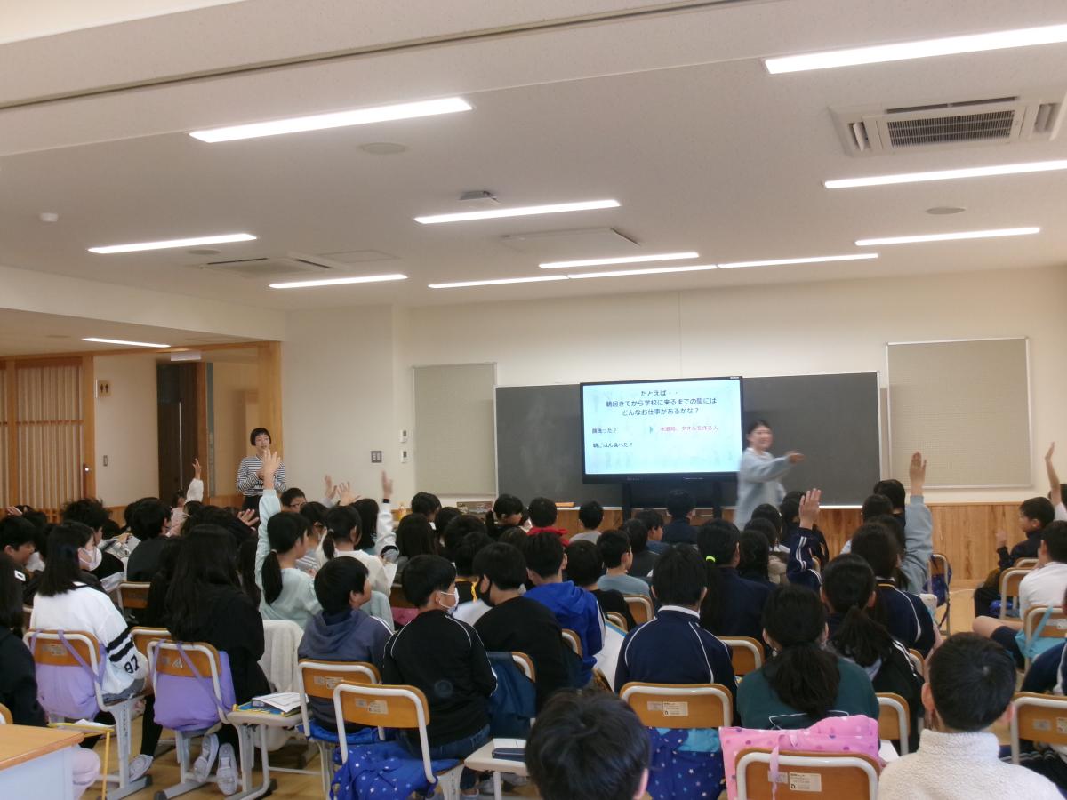 自分の身体は自分のもので、相手の身体も相手のものだからこそ、お互いに大切にしなければいけないといった旨のお話や、各学年の段階に合わせた言葉で、これから起こる体への変化についてや性の悩みに対しての解決法などをお話いただきました。
