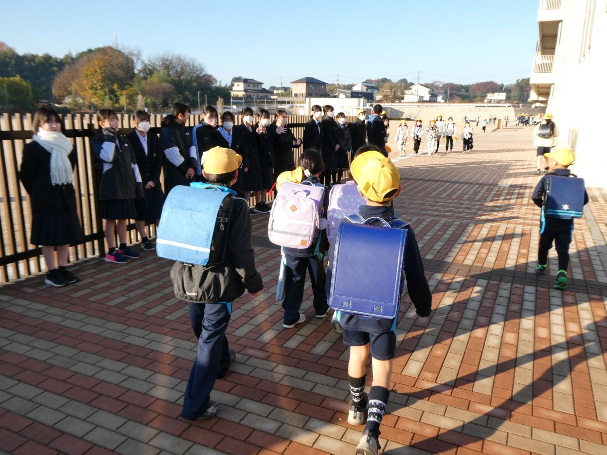 11月28日(金)に、高山学園内の学校(高山中、香取台小、島名小、真瀬小)で、合同のあいさつ運動を実施しました。香取台小の正門では、高山中の7年生と本校の生活委員会の児童が、登校してきた児童達に元気に「おはようございまーす。」とあいさつをしてくれ、気持ちのよいあいさつの声がたくさん聞こえました。同時間には、万博記念公園駅前でも小中学生が合同であいさつ運動を行い、通勤・通学する地域の人たちにあいさつの声かけをしました。少しでも地域や学校の雰囲気が明るくなることにつながってくれたらいいなと思っています。