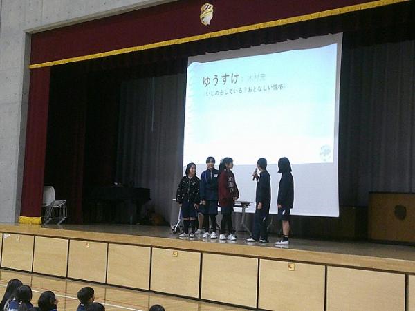12月12日、体育館で「いじめゼロ集会」を行いました。各学級で考えたスローガンを発表し、児童会による劇やメッセージもありました。校長からは「仲良くするために、自分からできることを考え、行動しましょう」と話し、誰もが安心して過ごせる学校づくりについて考える時間となりました。児童会の皆さんも準備を頑張り、会場は真剣な雰囲気に包まれました。発表されたスローガンは職員室前の廊下に掲示し、学校全体で「いじめゼロ」を目指す思いを共有しています。