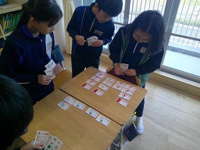 学習のまとめとして、防災に関する知識を楽しく身につけられる「防災カードゲーム」に取り組み、友達と協力しながら災害時の対応について理解を深めました。