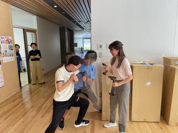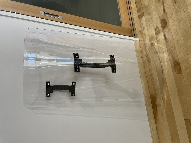 不審者対策として、防犯シールドを各教室に設置しました。これは、警察装備を製造する企業のご協力によるもので、子どもたちの安全を守るための取り組みです。