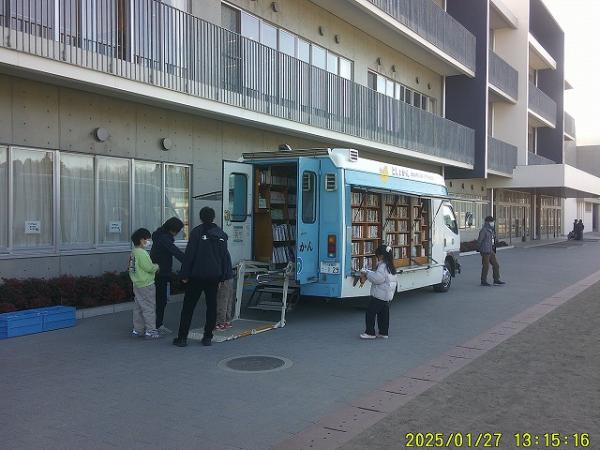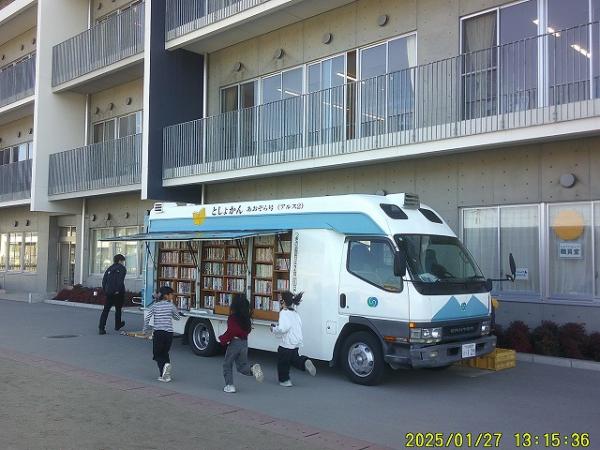 今日のロング昼休みは、「遊びの広場」(児童クラブの前)も開放しました。ブランコや砂場、ジャングルジムで多くの児童が楽しみました。つくば市の自動車図書館アルス号も来校して大人気。中庭では縄跳び、校庭ではサッカーや鬼ごっこ、鉄棒など、寒さに負けず元気に遊ぶ姿が見られました。