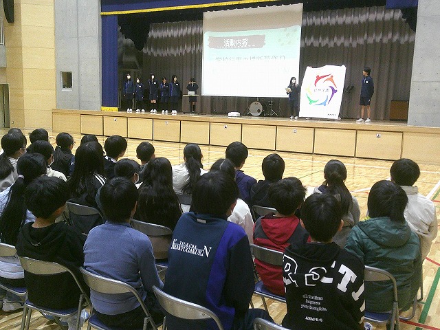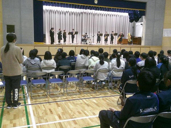 6年生が研究学園中学校の部活動紹介集会に参加しました。卓球、テニス、バドミントン、美術、科学・パソコン、吹奏楽の紹介があり、練習や作品、演奏を見学しました。紹介はありませんでしたが、野球部(他校と合同)もあります。中学校生活が楽しみになる集いでした。