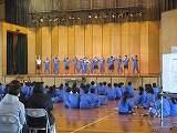 9年生の義務教育最後の授業参観では、体育科のダンスの発表会を行いました。
