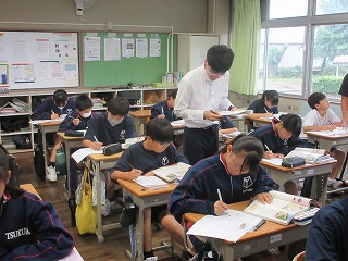 昨日から、教育実習生が谷田部中に来て授業を教えてくれています。本日は社会の時間に、わからないところを丁寧に教えていただきました。子どもたちは初め、緊張してなかなか話しかけることができませんでしたが、教育実習生の温かい声かけや優しさにより、多くの生徒が、心を開いて、積極的に話しかけにいく様子が見られました。今後も3週間の間お世話になるので、生徒たちには実習生との思い出をより多く作っていってほしいと思います。