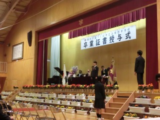 卒業生の皆さんのこれからの活躍を心より期待しています。保護者の皆様には、これまで本校の教育活動に御理解と御協力をいただき、誠にありがとうございました。今後ともどうぞよろしくお願いいたします。