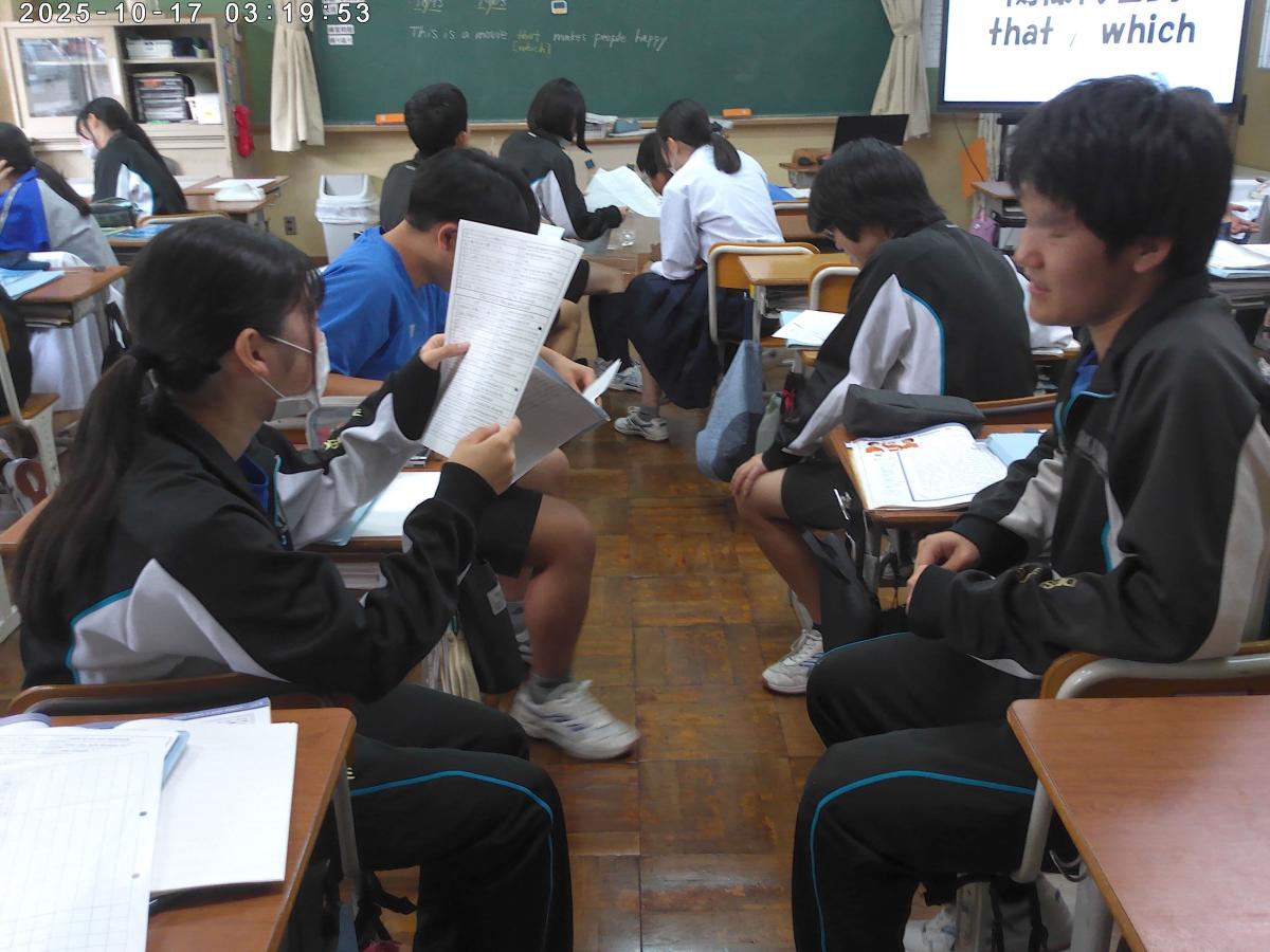 8年生は合唱コンクールに向けて、学年リハーサルを行いました。どのクラスも本番を意識し、真剣な表情でステージに立ちました。指揮者の動きに合わせ声をひとつにする姿からは、これまでの練習の積み重ねが伝わってきました。自分たちのクラスの発表だけでなく、他のクラスの演奏を静かに聴き合う姿にも、8年生らしい落ち着きと温かさが感じられました。リハーサル後には、クラスごとに作戦会議を行い、次への課題を共有する姿も見られました。これからの練習も頑張ってほしいと思います。