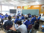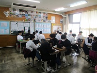 8年生が来年度の修学旅行に向けて着々と準備を進めています。来年度と言っても4月下旬なので、あと1か月ほどで当日を迎えます。今日は2日目のタクシー班研修の見学先を話し合っていました。