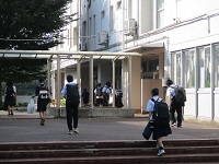 残暑が厳しい中での登校でしたが、みんな元気に挨拶をして校舎に入っていきました。