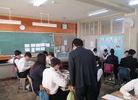 8年生の教室では、「書道パフォーマンスの挑戦」という資料を通して日本の伝統文化について考えていました。このお正月、日本の伝統文化に触れる機会もあったようで、活発に自分の意見を発表する姿がありました。