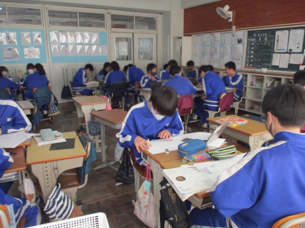 8年生の国語では、「走れメロス」の学習をしています。物語の内容理解にとどまらず、文章の表現に注目し、その特色について生徒同士で考えを深め合っていました。