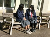 中には、ベンチで日向ぼっこをしながら会話を楽しむ女子生徒の姿も見られます。