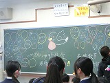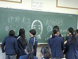 8学年生徒たちは、担当教員に向けて、これまでお世話になった感謝の言葉と、元気な赤ちゃんの誕生を願うメッセージを、黒板アートとして表現しました。