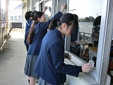 教室の掲示物外し、黒板磨き、床磨き、窓拭き、ゴミ出し、加湿器掃除、ロッカー・机の名札はがし等、生徒一人ひとりが集中して、黙々と清掃活動に取り組んでいました。