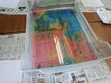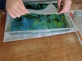 7年生は、美術の授業で「マーブリング」に挑戦しました。