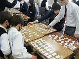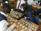 教師が上の句を詠み上げると、必死になって下の句の札を探し出す生徒たち。