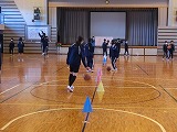 7年生は、「ダンス」「バスケットボール」「サッカー」に分かれて、体育の学習を行っています。