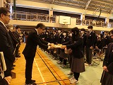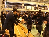全校生徒が体育館で見守る中、表彰式が行われました。