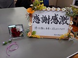 生徒たちの感謝の気持ちが込められた色紙【感謝感激】と、プリザーブドフラワーです。