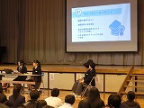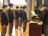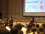 冬休み前集会で、8年生中央委員の6名が、「冬休みを有意義に過ごすために」について説明を行いました。