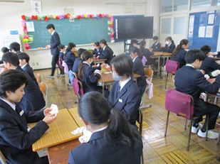 本日(4/10)は、1校時~3校時に各クラスで自己紹介や係・委員会決めなどを行いました。生徒たちは、それぞれの活動に真剣に取り組み、予定していた内容をしっかりと終わらせることができました。なかには、予定していた内容を早く終わらせて、余った時間でレクリエーション(カードゲーム)を行ったクラスもありました。