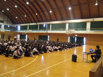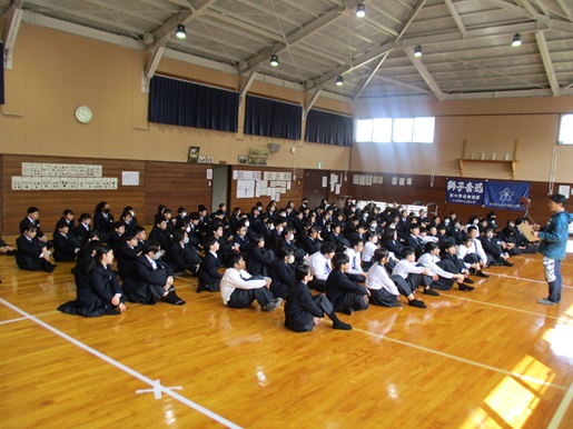 本日(4/14)の2校時に、武道場で学年集会を行いました。
