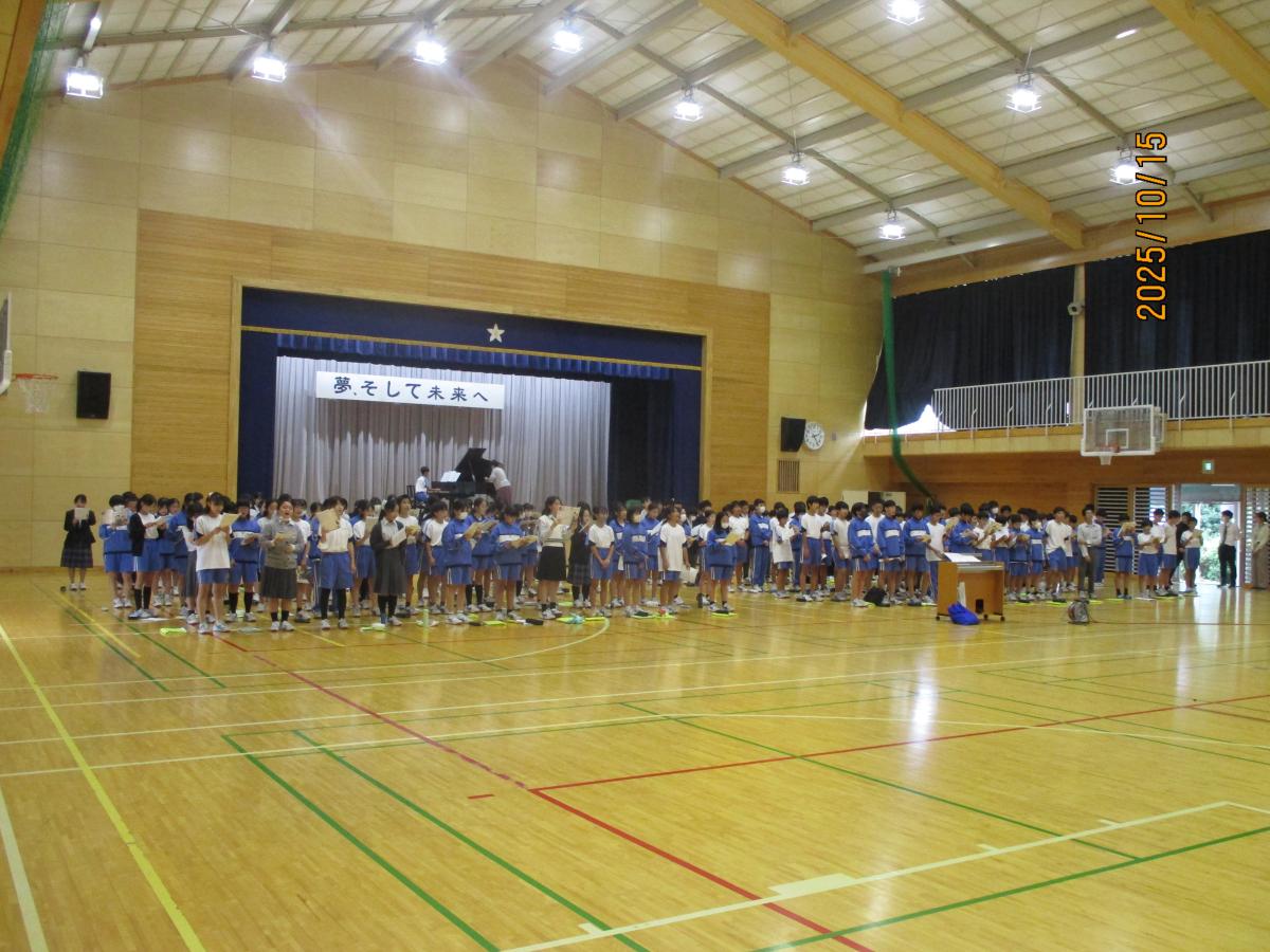 前回まではパートごとに練習を行い、本日初めて全員で合わせて歌いました。 とても迫力があり、ハーモニーがきれいに響いていました。 音楽祭当日が楽しみです!