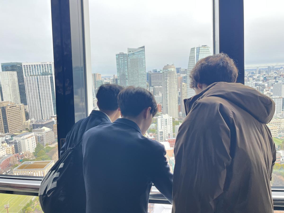 全員で展望台に移動しました。 初めて東京タワーに来たという生徒も多く、とても興奮していました。 これから昼食まで自由散策になります。
