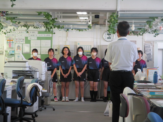 先ほど、卓球部部が帰校しました。 結果は、惜敗でした。テニス部、卓球部の皆さんお疲れ様でした。 バドミントン部は、明日も頑張ってください! 保護者の皆様、応援、お弁当の準備などありがとうございました。
