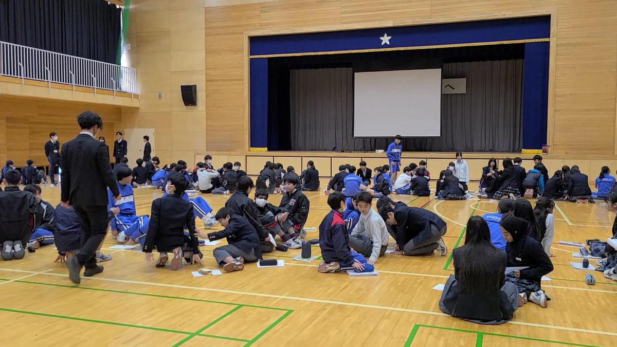 体育館で、次年度の修学旅行に向けてタクシー班決めを行いました。