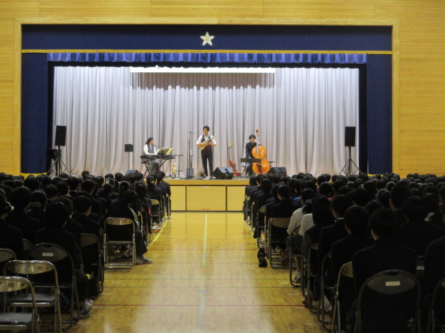 生徒たちは、曲に合わせて体を揺らしたり、手拍子をしたりしていました。