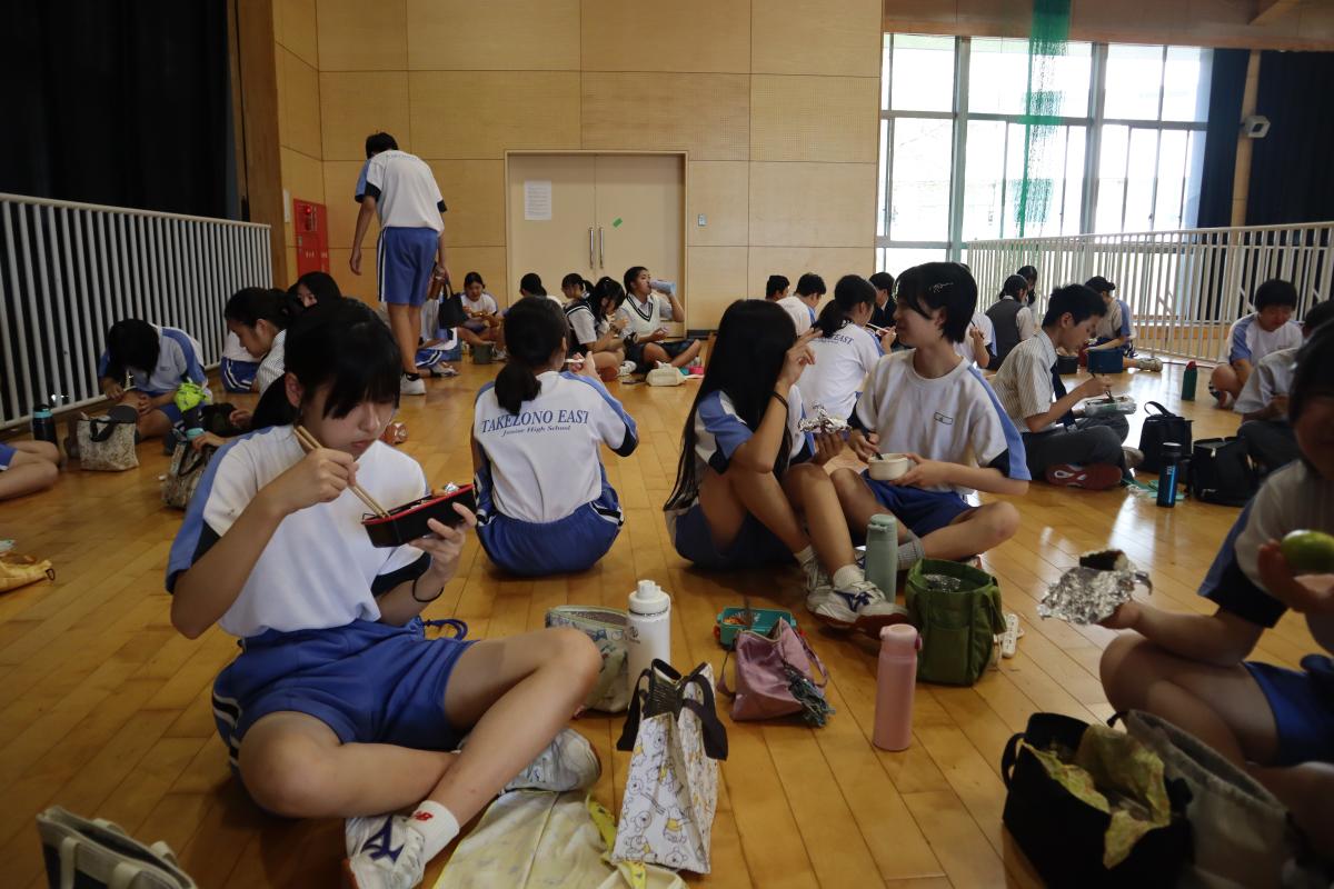 今日のお昼は、お弁当です。 各学級の運営を3ローテのシフト制で組んでいるので、自分のタイミングで好きな場所で昼食を食べています。 みんなとてもおいしそうに食べていました。 保護者の皆さん、朝早くからお弁当の準備ありがとうございました。