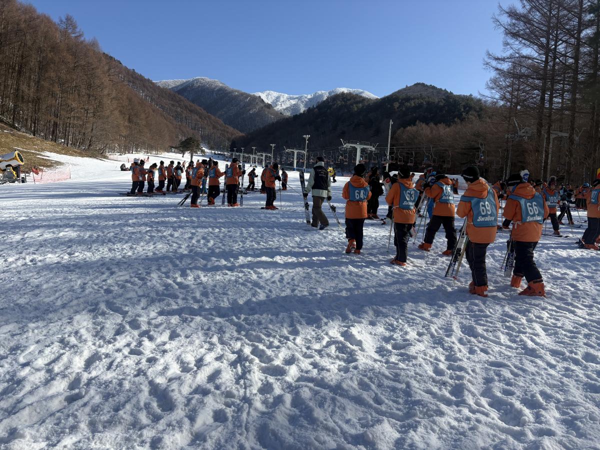 おはようございます。 朝食が食べ終わって、ゲレンデに集まり始めました。
