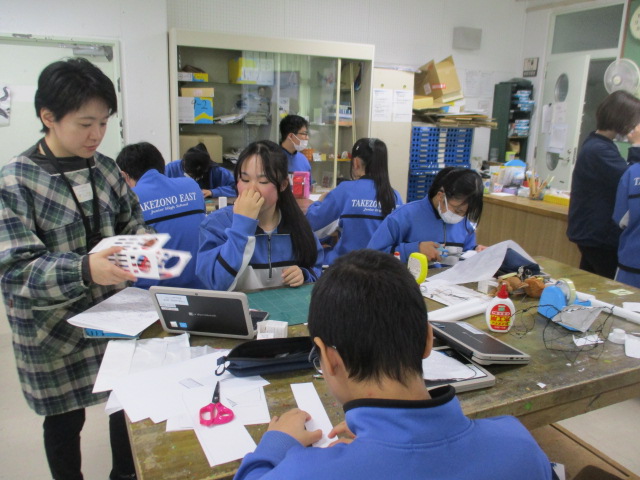 「あかりが作る空間」の授業で、それぞれの生徒が制作活動をしています。