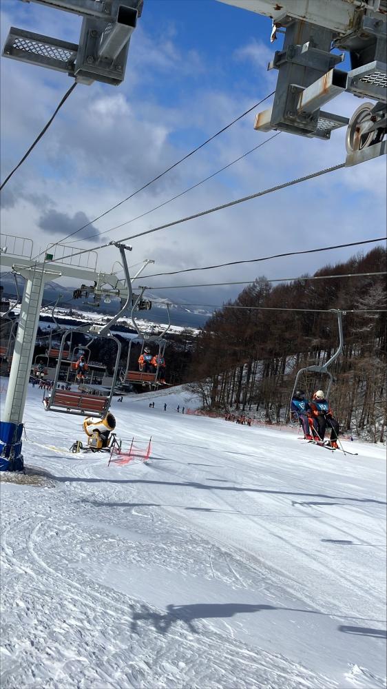 続々とリフトに乗っています。 降りるときに滑ってしまう生徒もいますが、みんな頑張っています。