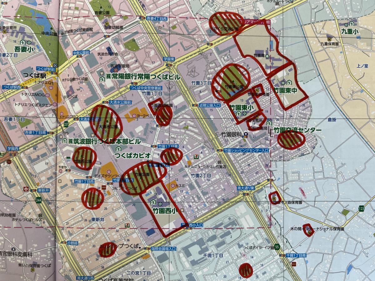 そこで、災害が起きてしまった時にどうするのかを「つくばのちずジュニア」を使って考えました。