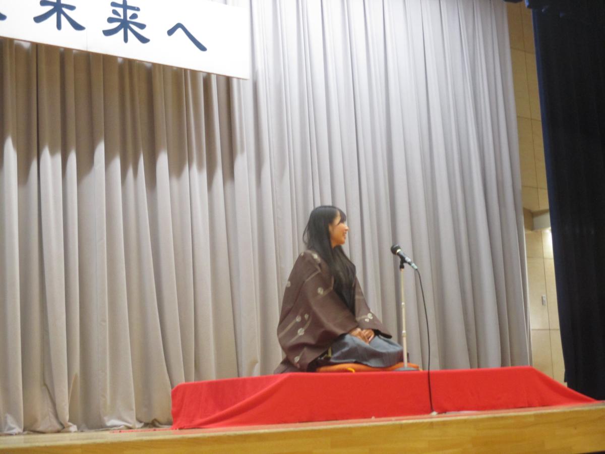 また、代表生徒が落語の体験をさせていただき、基礎を指南していただきました。