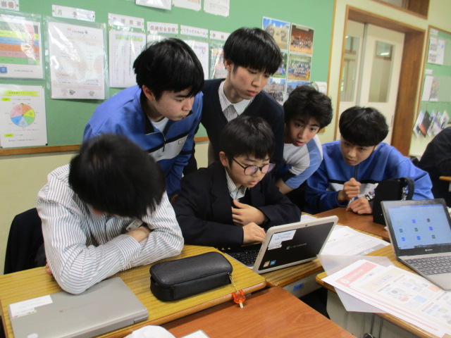 「株式会社をつくろう!」という教材を活用して探究的な学習をしています。 グループごとに、「顧客のニーズ」、「商品の特徴」、「社会的責任」などを話合い、業種や事業・サービス内容などを決めました。 次回は、キャッチコピー、価格なども決めます。最終的には全体にプレゼンをして、出資したいグループを決めていきます。 利潤を追求するだけでなく、顧客のニーズや社会的責任なども考えて起業してほしいです。