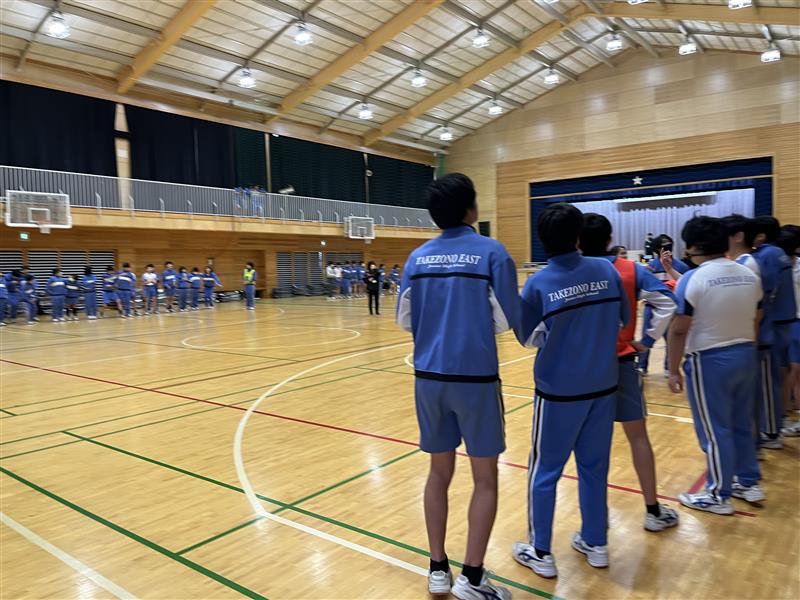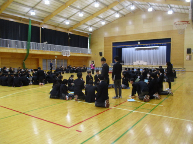 5校時に全校生徒で実施しました。 7年生からはメッセージ動画、8年生からは借り人競争とクイズがあり、会場は大盛り上がりでした! お礼として、9年生からは各学級の出し物、全体でのメッセージを送りました。 企画立案をしてくださった実行委員の皆さんありがとうございました。 ※「一覧を見る」から、もう一枚の写真(PRIDE)も見ることができます。