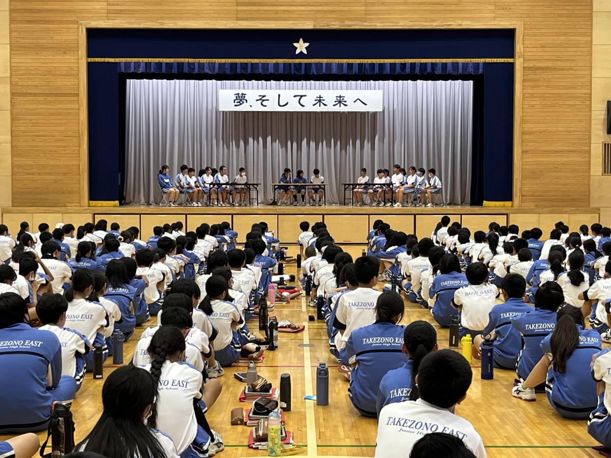 オーディエンスの生徒からは、「最初は1人でいる生徒に声をかけないほうがよいと思っていたが、討論を聞いて声をかけてみようと思った。」、「いじりはやめた方がいいと思うのでアクションは起こしたいと思う。アクションといっても、いじられている現場に行って注意をするのではなく、いじられている本人に声をかけていきたいと思った。」、「友達の悪口を言うのは良くないことだけど、告げ口をして仲が悪くなるのも嫌だから、とても悩む。」などという感想発表がありました。オーディエンスの生徒も、自分事として考えることができていました。