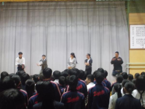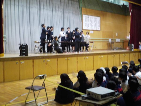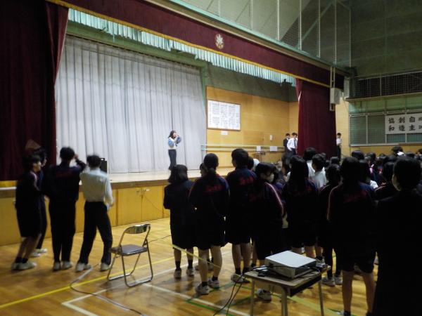 5時間目には8年生の音楽会のリハーサルが行われました。実行委員を中心に会を進めました。9年生の先生にもアドバイスを頂きました。あと1週間それぞれのクラスでの練習も熱が入ってきました。